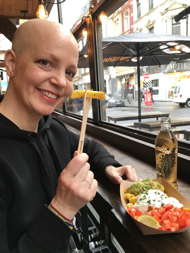 Maja picks me up from chemo and we planned to go for Fish’n’Chips, but the place closed down! We find another Chips place, where the chips actually look better than what they taste like. My face is all blown up from cortisone, but it is like a face lift – no wrinkles!!! I am soo tired that I can barely keep my eyes open. Good night world 😴