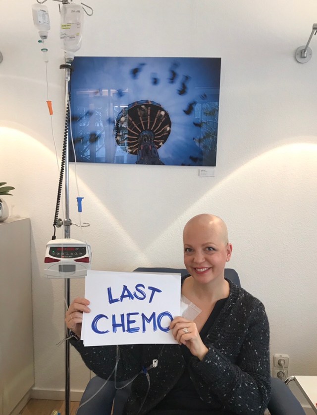 „Frau von Korff?!?!“ I open my eyes in panic and dash up „Did I snore?!? “ I was deep asleep and even dreaming ❤️…. „Noooo, you are done!“ I cannot believe it! My LAST chemo is over 😎 just like that – nothing I had to do 😉