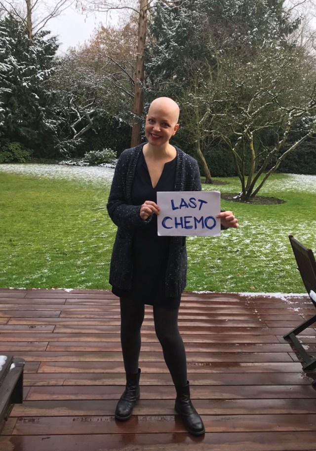 Das Schild „last Chemo“ hat mir ein Lächeln auf’s Gesicht gezaubert. Das zeigt wie sehr man doch mitfiebert bei Deinem schweren Gang über die letzten 7 Monate. Bali steht nun nichts mehr im Weg auch wenn es noch ein paar Tage dauert bis zum Abflug.