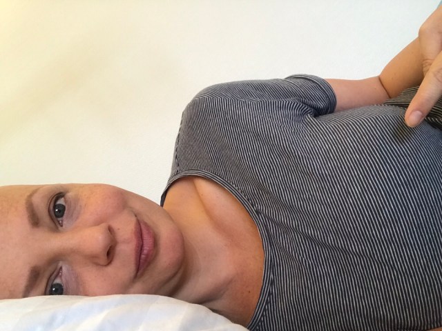 What happened to my left breast?!? Well, during the operation, the 4mm rest of my tumor in my left breast was removed and the surrounding tissue plus the tissue around the spot where the second tumor was and the chemo port on the right hand side was also removed. They cut next to the nipple, just like last time, which will be barely noticeable, if it heals alright, but for now, it is still bleeding now and then. The breast is massively big, but apparently all ok and I am allowed to go home tomorrow. Last time my boobs were this big, I was breast feeding, but since this is a one sided issue, it feels strange….I need to wear a sports bra 24 hours a day for the next couple of weeks, need to do some exercises and shall not lift anything with my left arm – up to 2,5kgs is ok though. I have hardly any pain, but regularly take pain killers.