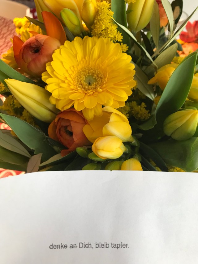 Today, I am very clear, like I have not been for weeks. It is my first day without pain killers and I am absolutely fine. Calm, rested, in the here and now. I will try to carry this into my daily life and tomorrow I start planning my little daily routines around physio and doctor appointments. I can see yet another psycho oncologist, need to call Haus Lebenswert to check on the music therapy and was invited to some cancer evening tomorrow at the Institute for Intuition ….. shall sort my chakras and give some neutral feedback regarding the dreadful aura reading experience 😂