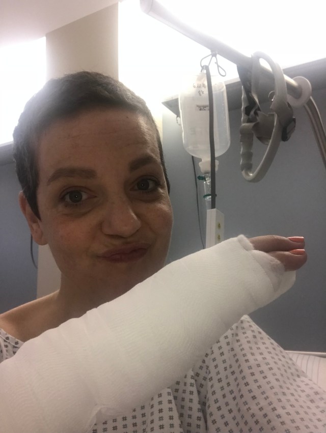 Today I am at St. Vincent’s Hospital for what I thought was just a little operation on my finger… Little did I know that I had to get completely changed, even get a room and wake up with a massive bandage around my arm. The poor male nurse, who had to help me get dressed, is a bit helpless with closing bras, but hey….