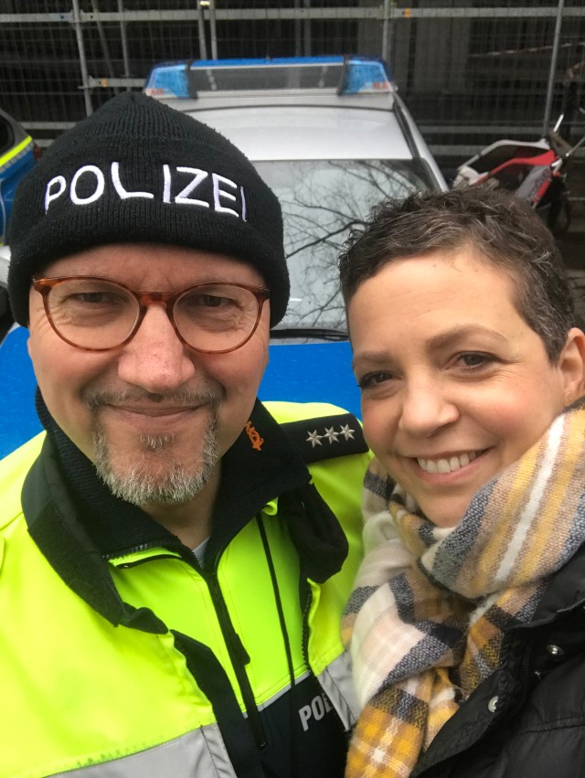 Today there is no room for cancer though…. Don shows my kids the police vehicles. One might have had the impression that my kids were not very excited, as Leo pretended to be asleep, but it was just too exciting to handle the situation…. Leo has already bragged about it at our neighbours and reported en detail 😉…. Thank you, Don!