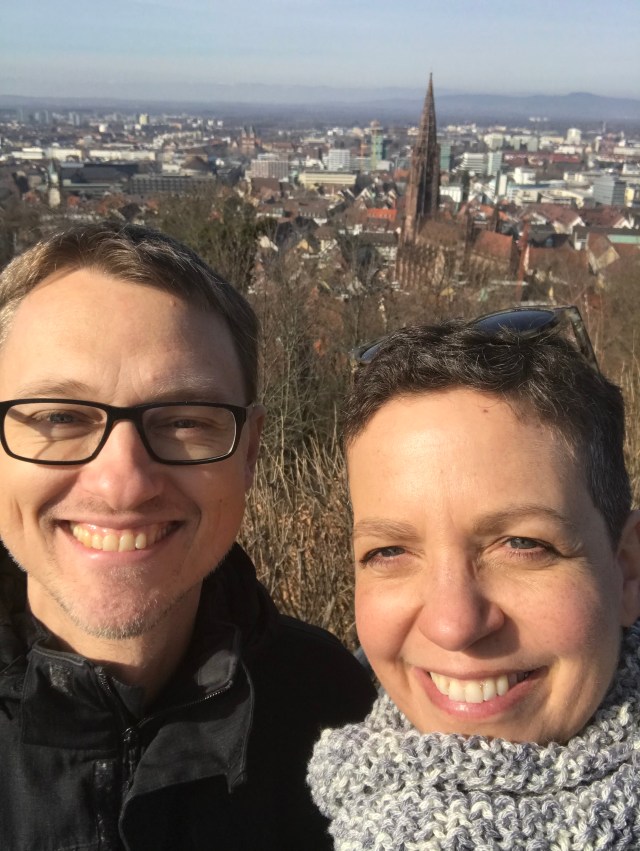He shows me around town, there is Guggamusic blasting through the alleyways and it is great – the sun is shining, we even see the French Alpes, I see and learn a lot about Freiburg, but most importantly, we chat away and it is so good to see him!