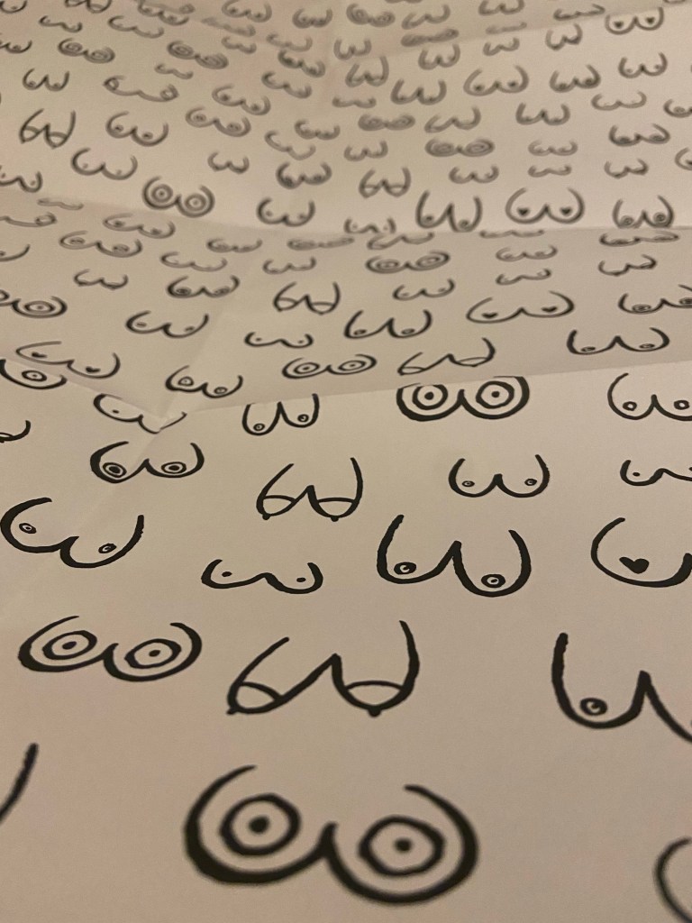 Ich habe dieses wundervolle Geschenkpapier von meiner Freundin Nadine bekommen. Paßt zu mir und leider nicht zu allen Frauen, denn viele haben nur eine Brust oder gar keine Brust mehr!