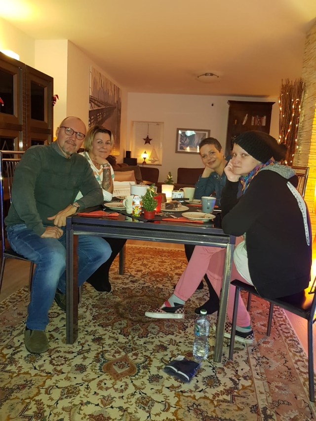 We spend the afternoon at our friend Simone’s, I actually brought some pencils to draw more window pictures for her and with her and I am happy! Oh jolly jolly Christmas time! At the end all four kids play happily together…. oh joy!