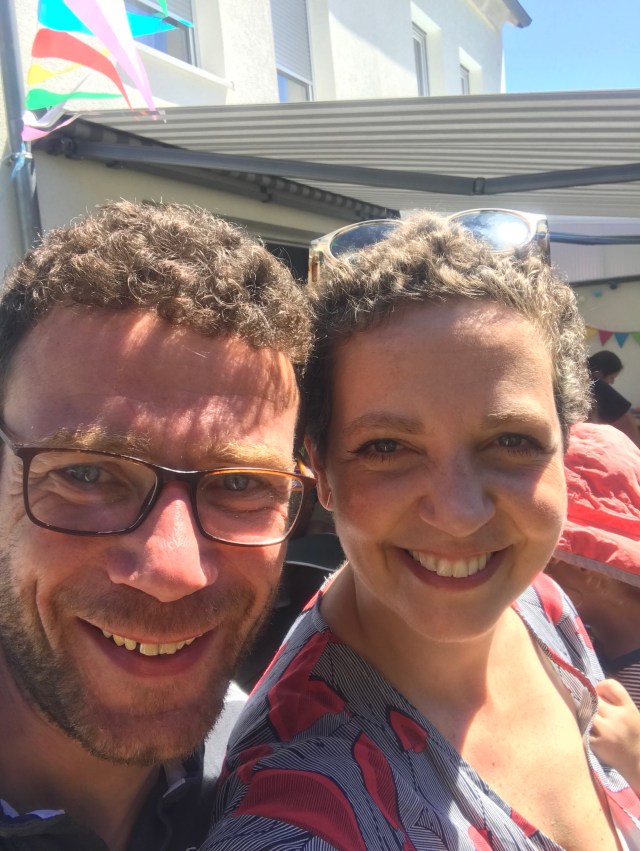 I manage alright, speak to some parents I have not seen for a while and am happy that my kids are happy in this cute little kindergarten! In the book „Why does Mum wear a hat during summer!“ the cancer free Mum goes to the kindergarten summer event and wins the sack race with her son! Maybe this is why I am so happy that the kids are fit again, so joyous that weather is splendid and I dive into rider racing, coconut shy and wheelbarrow racing. My kids are adorable and my heart jumps with joy.