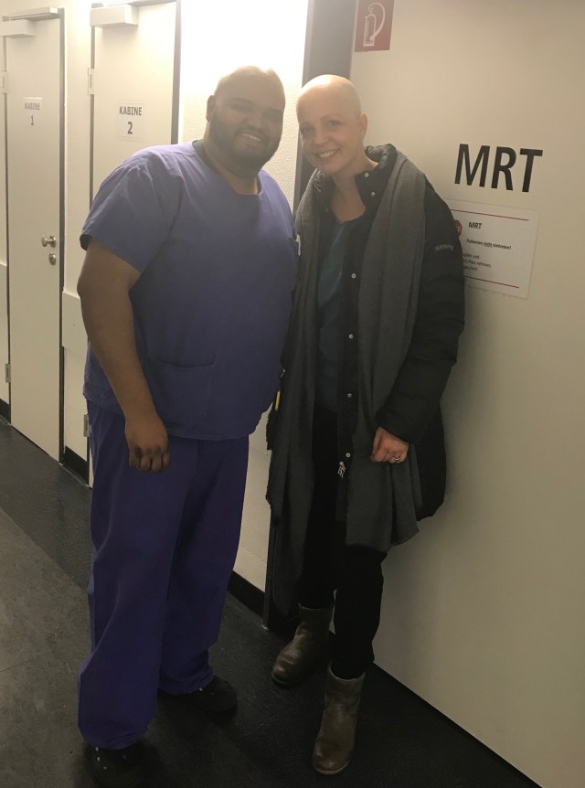 I thank the team, Dr. Reiser and suddenly nurse Fassbender is there as well – what a joy to see her. A final advice from Fassbender’s wisdom: „Even, when your hair is back and you look fit and healthy and everyone is expecting you to be yourself again, give yourself time! Your body will need another six month!“ Thank you ❤️